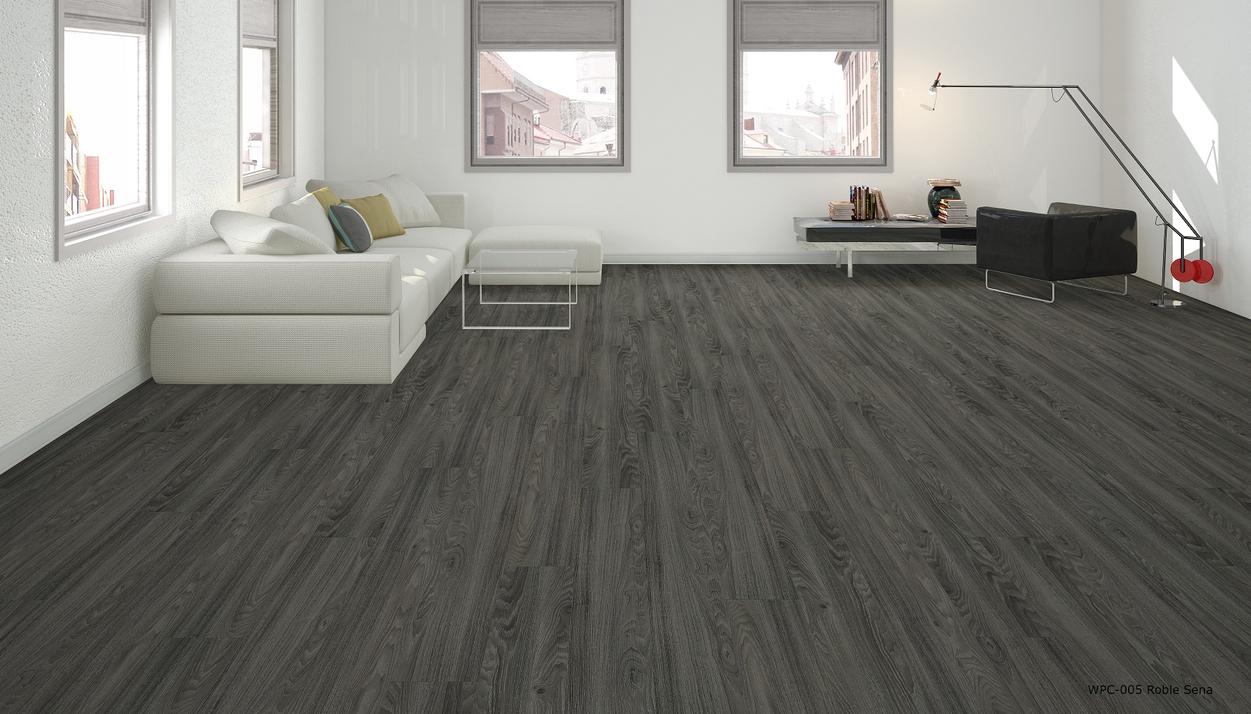 Pavimento tecnológico bicapa para interiores fabricado en WPC + LVT.